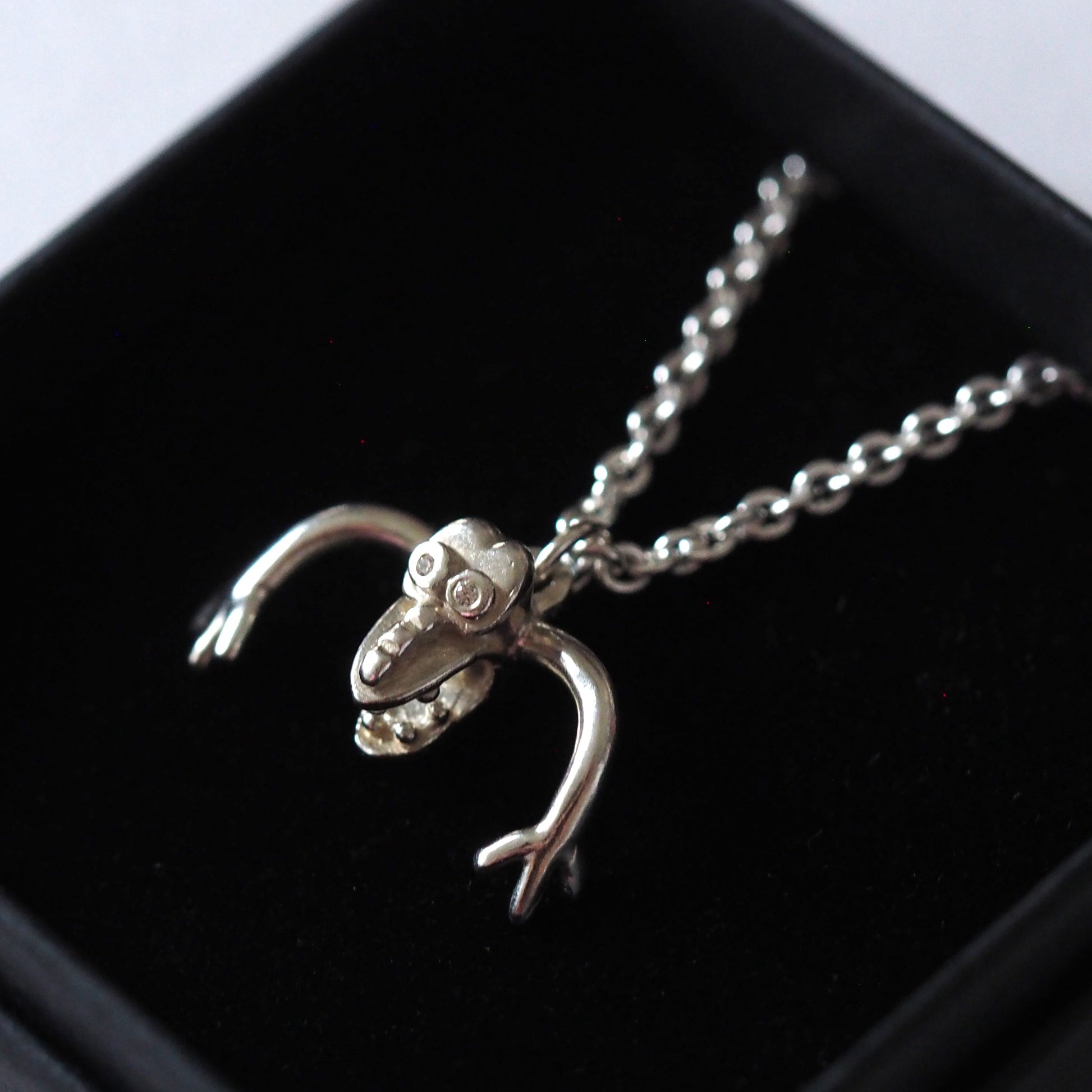 Eyes are brilliant cut white diamonds.