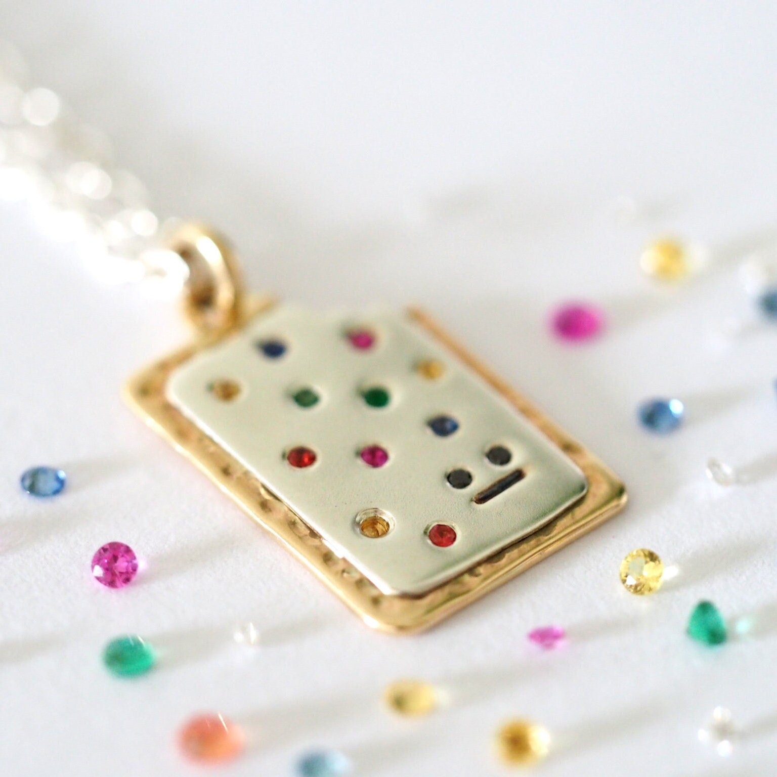 Can be made to order with stones of your choice, such as birthstones of loved ones as the sprinkles or with white diamond eyes.