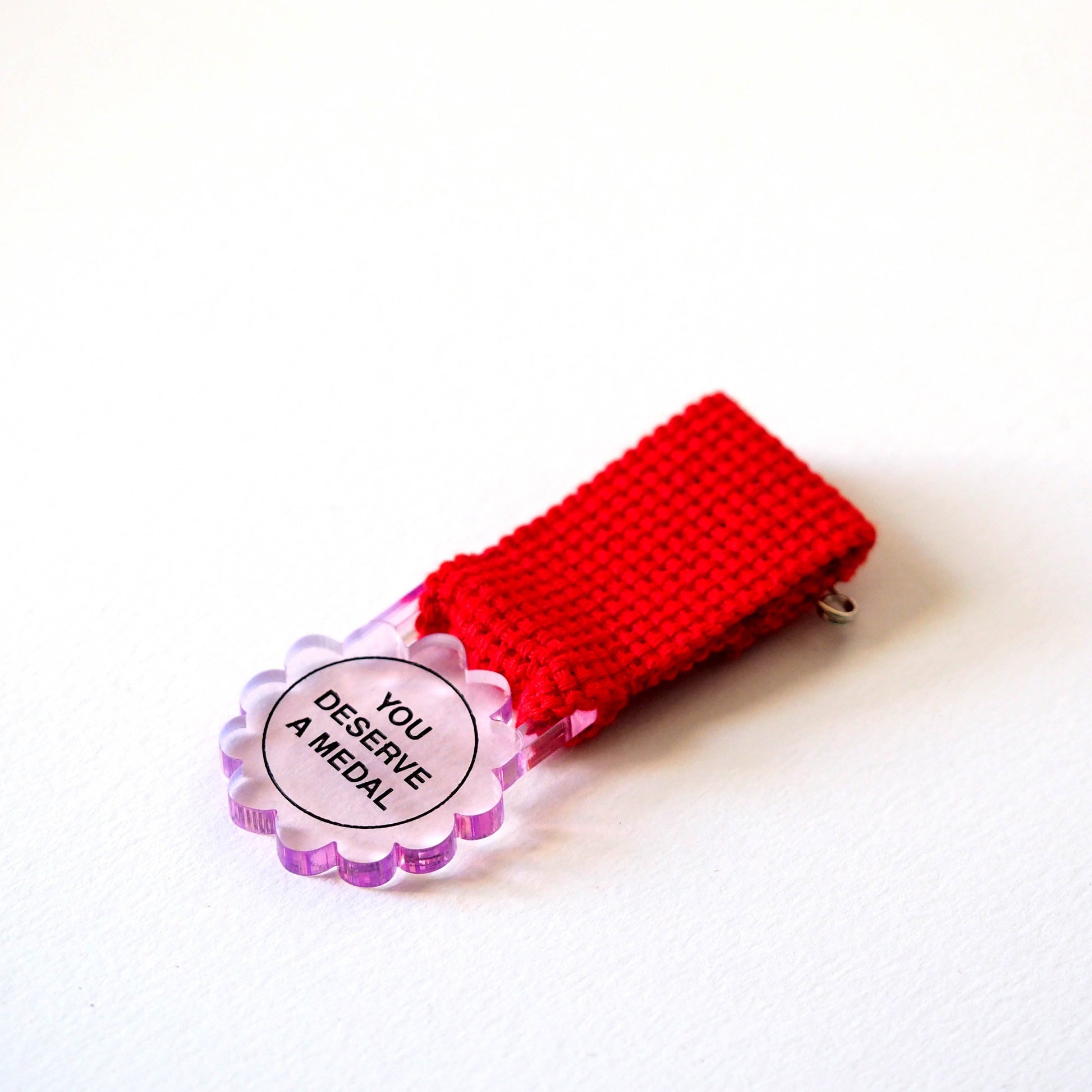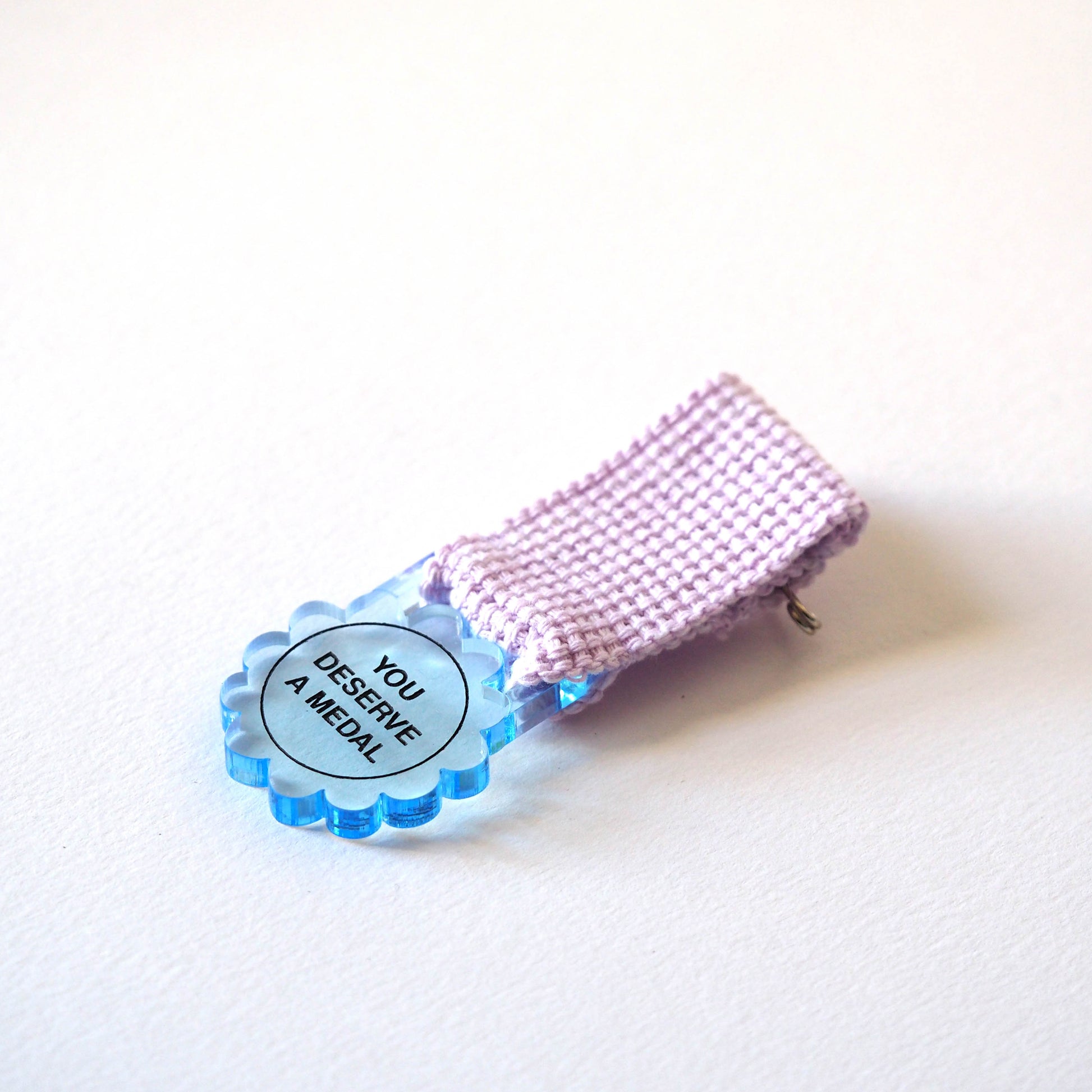The medal is laser cut in a lush new clear chunky acrylic.
